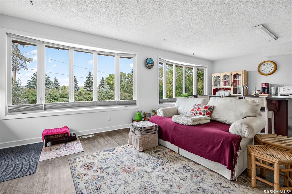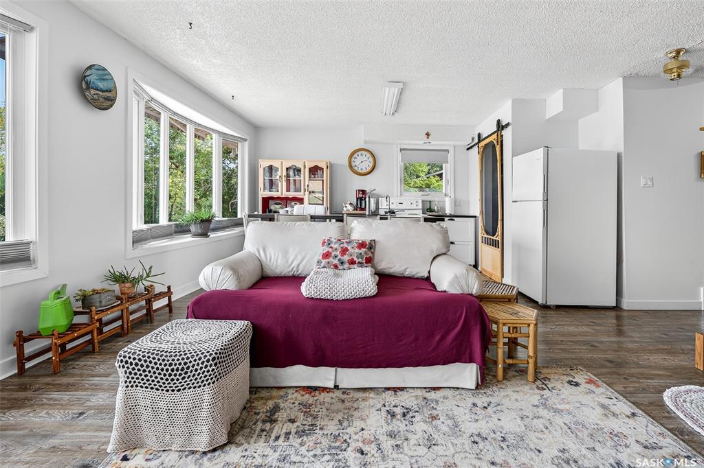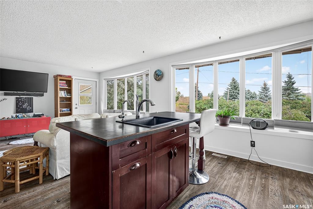Charming year-round property at Parkview on Buffalo Pound Lake! This inviting 2-bedroom home offers comfort, functionality, and lake-life charm. As you approach, you’re welcomed by a spacious front deck with convenient storage underneath. Inside, the open-concept layout connects the kitchen and living room, highlighted by large windows that fill the space with natural light. The kitchen features updated cabinetry, a modern sink, a generous pantry, and a functional island that doubles as a prep area and eati...