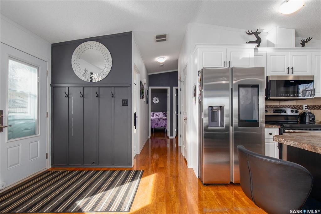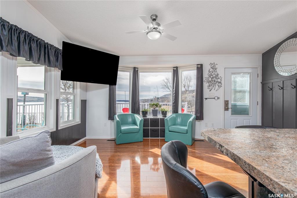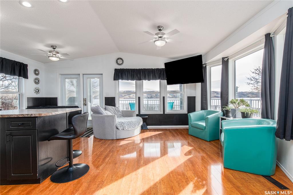 Welcome to your waterfront escape at South Lake, Buffalo Pound-where privacy, comfort, and lake life come together. Situated at the very end of a quiet dead-end road, this property offers exceptional seclusion as it’s the last home to the east, making it a rare find for those seeking peace and uninterrupted views. This 2013, 809 SQ/ft mobile home features a bright and inviting layout with 2 bedrooms and a beautifully remodelled 4-piece bathroom (2025). Recent upgrades include new triple-pane windows (Januar...
