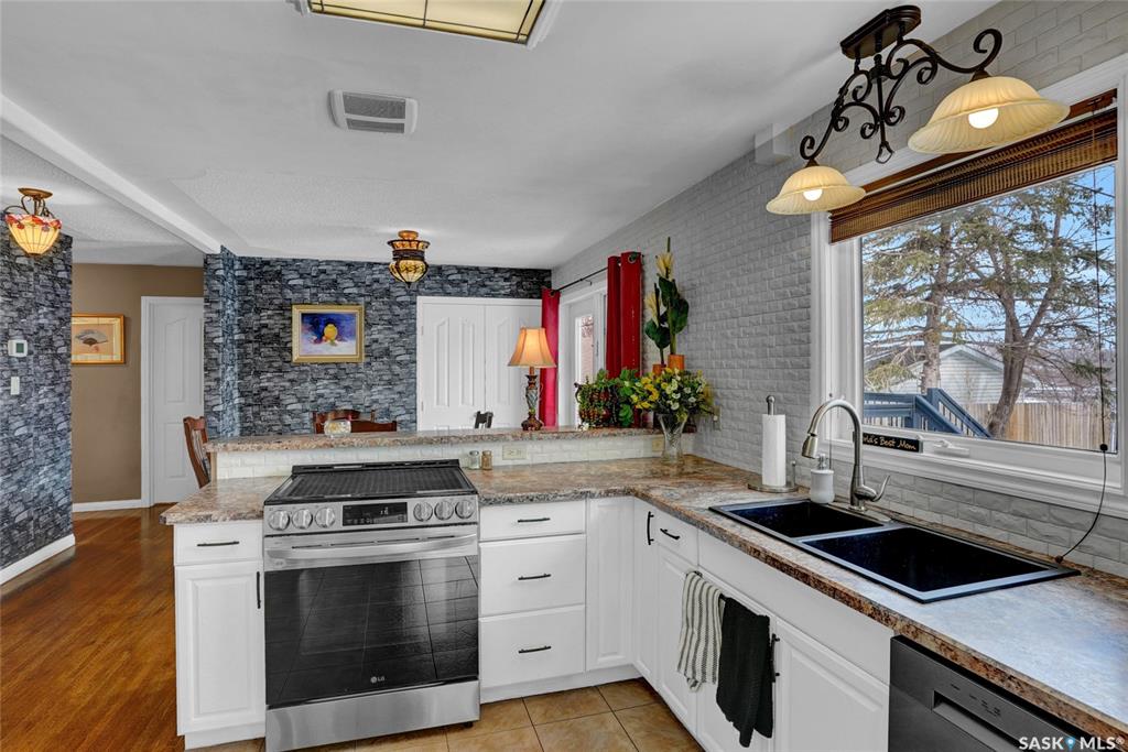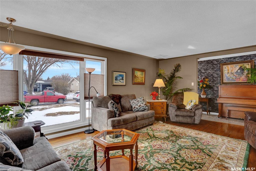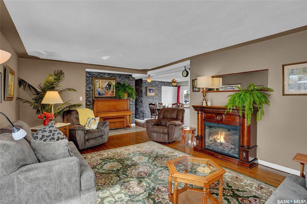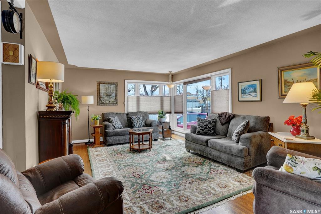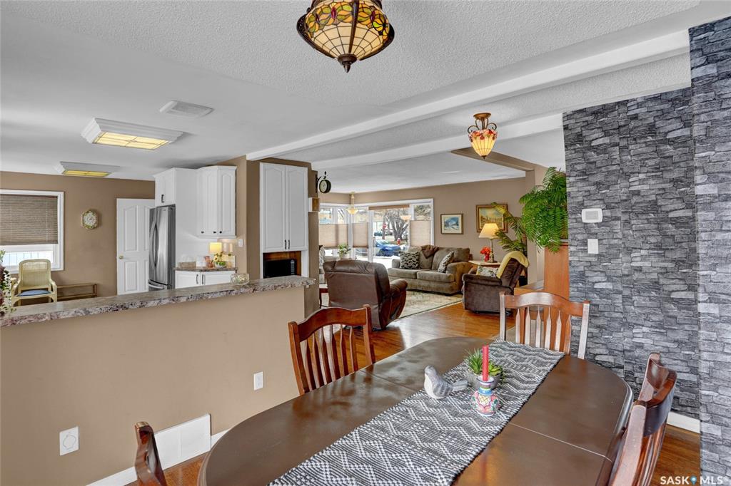 Welcome to this beautifully appointed & fully finished home, perfectly situated on a wonderfully manicured lot just steps away from McCullough Field, SaskPoly Tech & amenities. This home boasts updates inside & out, including, but not limited to house/garage shingles, vinyl siding, windows, Kitchen, Bath, Trims, Doors, refinished hardwood & newer flooring. Even the Deck is newer along with concrete walkways, Patio & Asphalt Drive. This Family Home’s main living area has been re-designed into a semi open con...