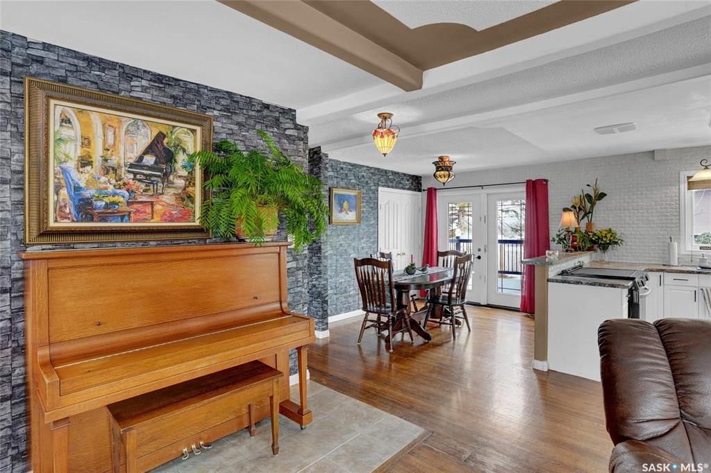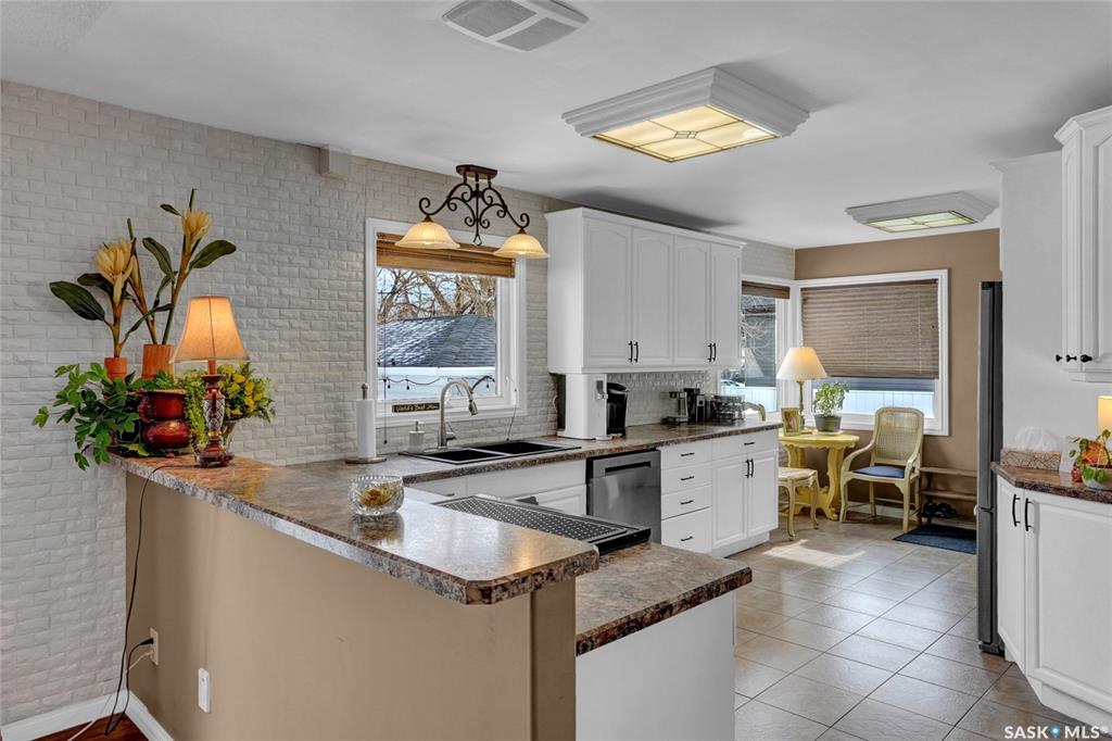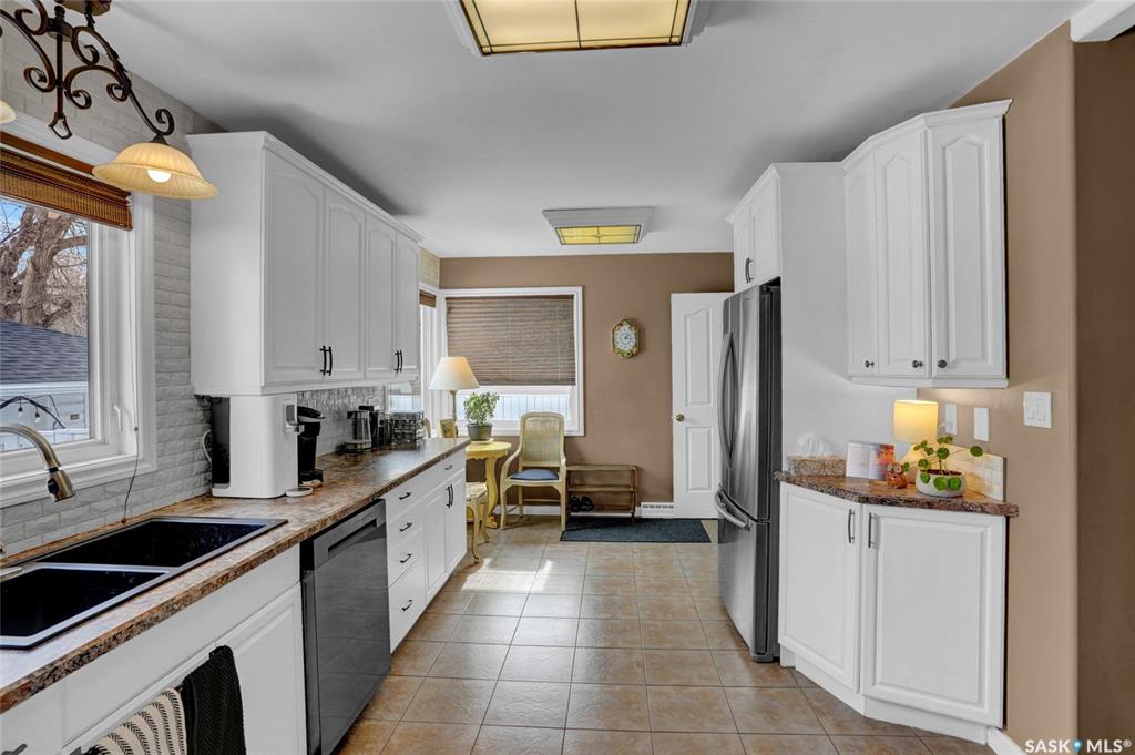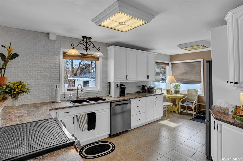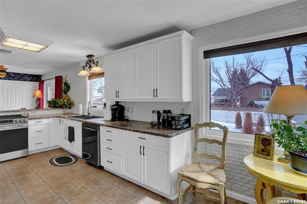 Welcome to this beautifully appointed & fully finished home, perfectly situated on a wonderfully manicured lot just steps away from McCullough Field, SaskPoly Tech & amenities. This home boasts updates inside & out, including, but not limited to house/garage shingles, vinyl siding, windows, Kitchen, Bath, Trims, Doors, refinished hardwood & newer flooring. Even the Deck is newer along with concrete walkways, Patio & Asphalt Drive. This Family Home’s main living area has been re-designed into a semi open con...