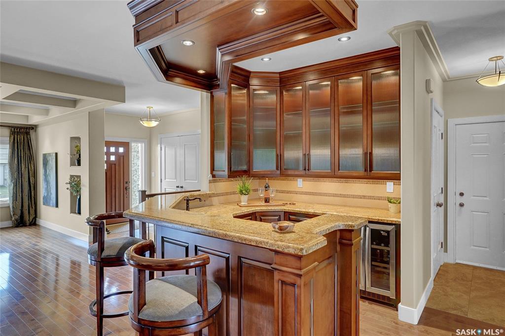 Nestled in the Lynbrook Golf Club community of Moose Jaw, this luxury condo is the epitome of refined living. Every detail of this property has been meticulously designed to offer an unparalleled lifestyle experience. Just a stone's throw from the lush greens of the Golf Course, this gated condo provides the perfect blend of privacy & prestige. This condo boasts high-end luxury finishes & upgraded features, offering over 4200 sqft of finished space. The 2 x dbl. att. heated garages, complete w/in-floor heat...