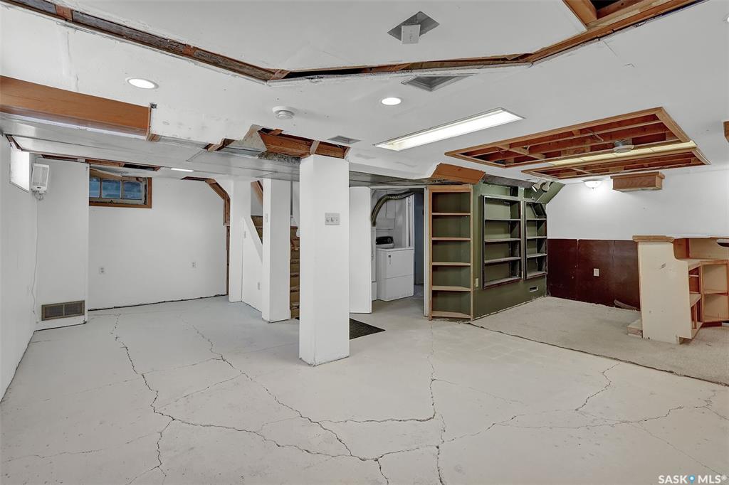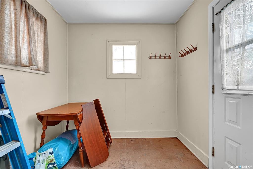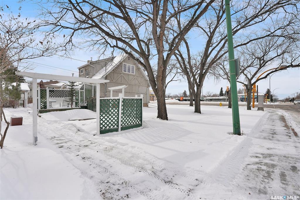Welcome to this charming one-and-a-half-storey home set on a double-sized corner lot with access from both Broad Street & 6th Avenue North. This 1945 classic blends character, light & versatility—offering a layout that can adapt to many lifestyles. The exterior has been base-coated & ready to personalize. Inside you are greeted by a spacious front entry that opens into the bright living room & lovely sightline toward the kitchen. Natural light pours into this home from every direction thanks to update...