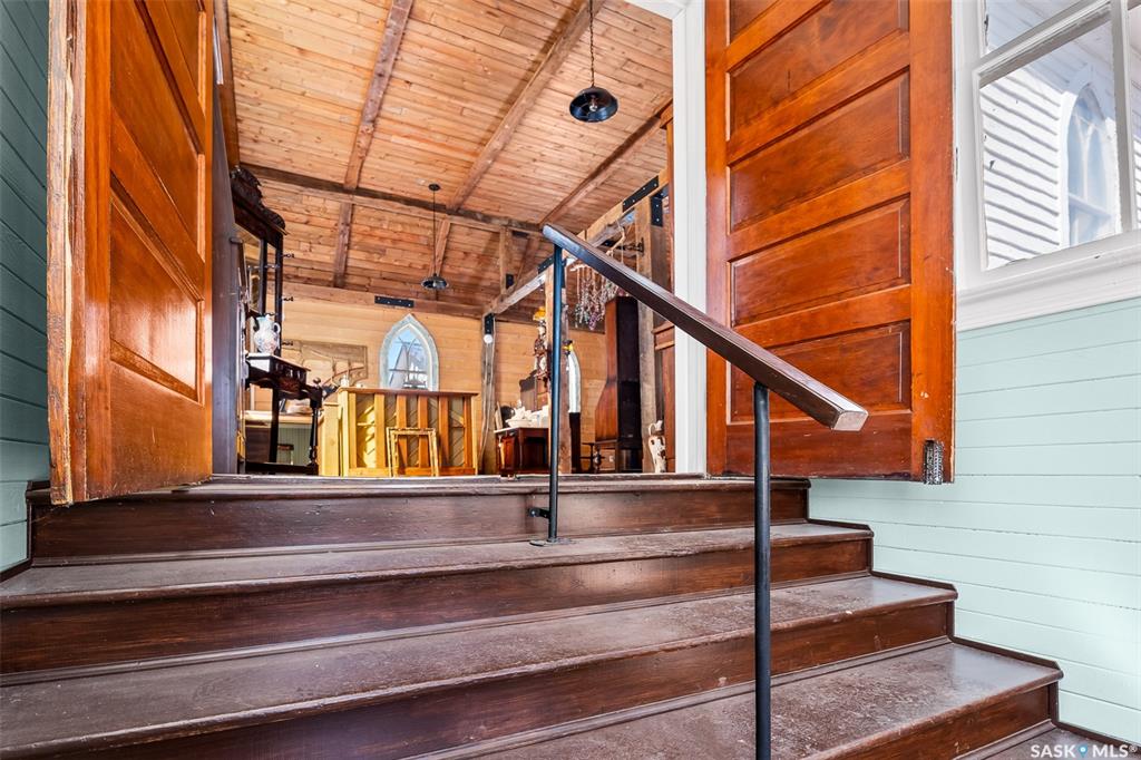 Are you looking for a charming little church in a great town? This could be just the place. So much character here! Boasting just under 1,000 sq.ft. and stunning vaulted ceilings! You will love the beautiful entrance with original wood doors! Inside you are greeted by a huge open space with stunning vaulted ceilings, exposed beams, stained glass windows and lots of original millwork. There is also a raised area with an electric fire place and stunning mantle. There are 2 sets of stairs leading to the baseme...
