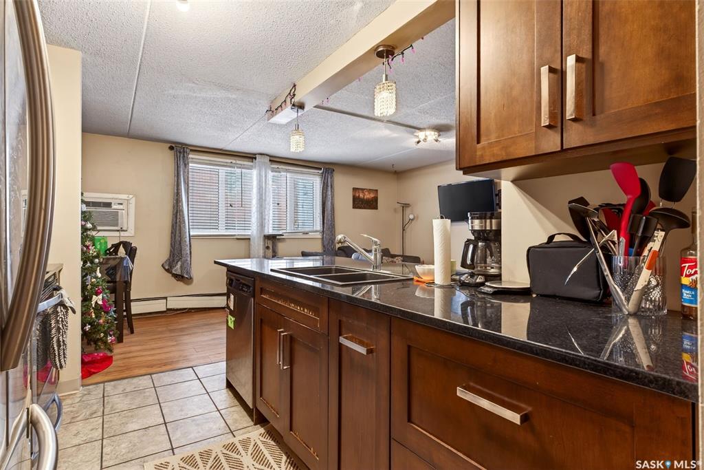 Welcome to this beautifully updated 2 bedroom, 1 bathroom condo located in the highly desirable Hillsdale neighbourhood, just steps from the University of Regina. This unit has seen extensive renovations over the years and offers a modern, open-concept layout that feels both stylish and functional, beginning with an updated entry door and triple-pane windows that enhance both comfort and energy efficiency. The kitchen features granite countertops, stainless steel appliances including a built-in dishwashe...
