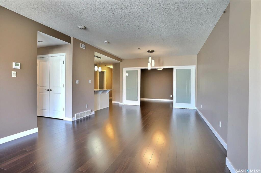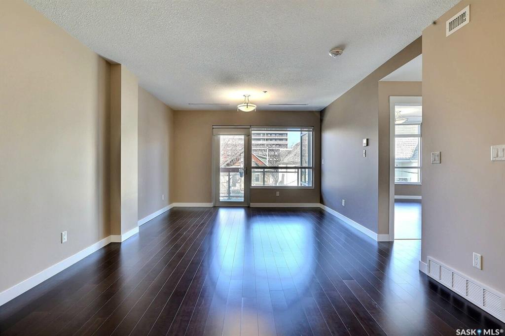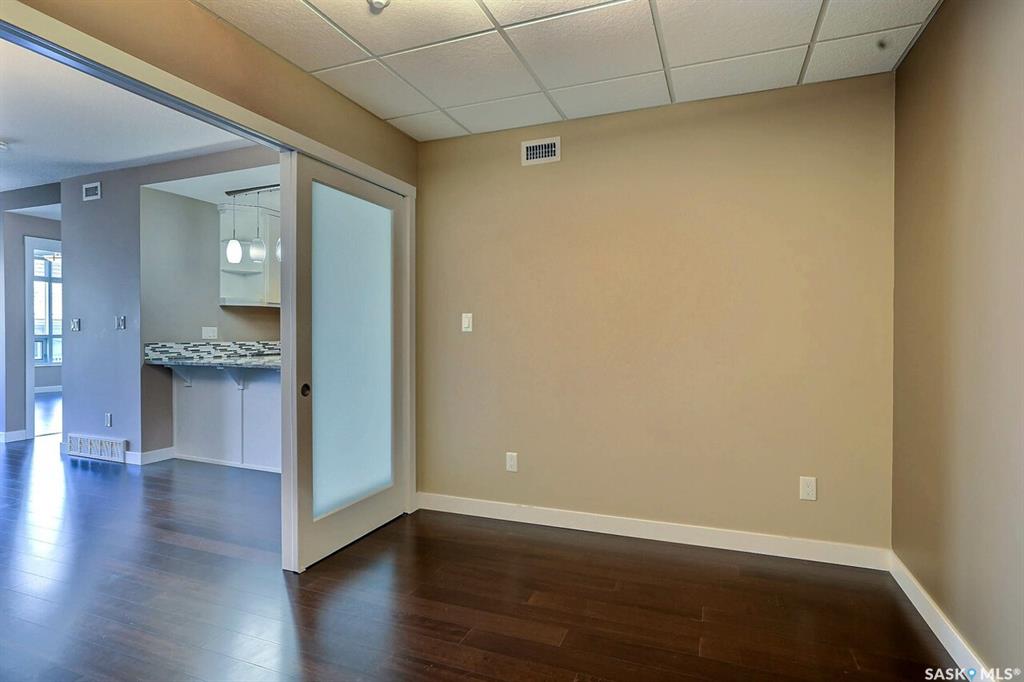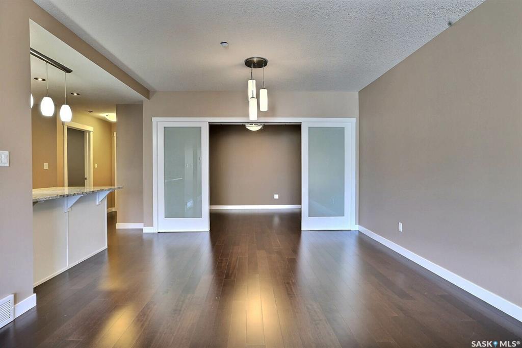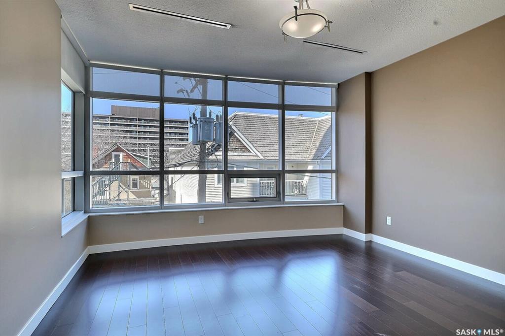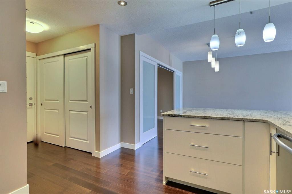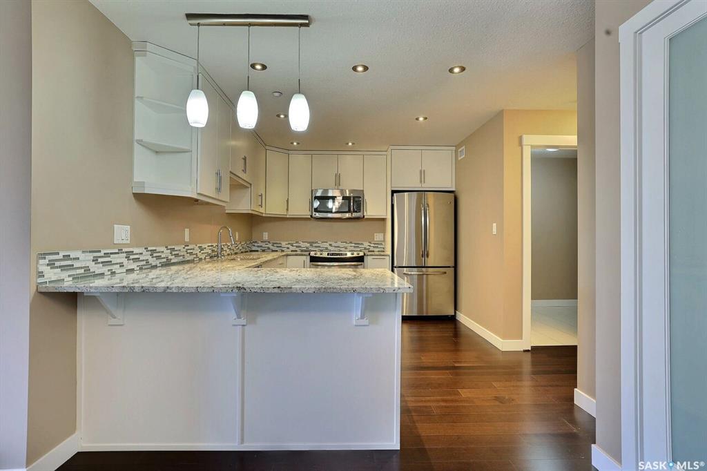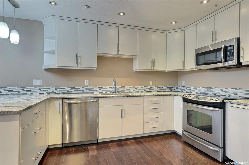 Fantastic downtown condo in desirable location close to the park and all downtown amenities. Very well maintained with engineered hardwood and tile flooring throughout. Open floor plan offers spacious living/dining room, huge kitchen with plenty of white cabinetry and stone counters. Very large den could double as an office or guest room. Huge master bedroom and main bath with tiled floor. Underground heated parking stall. Centre Square offers luxury, maintenance free condo living with beautiful amenities, ...
