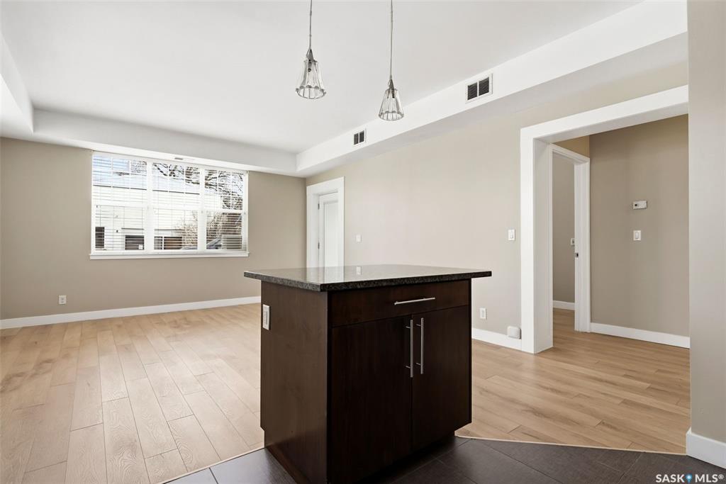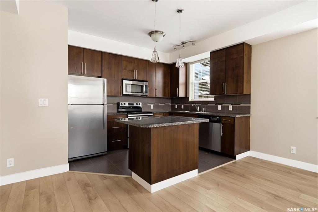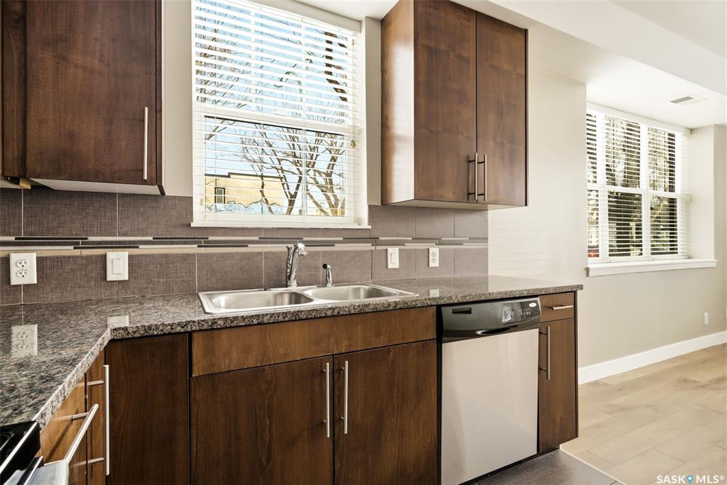 The Deveraux is a unique 2012 built condo complex, just steps from the General Hospital, high schools and more. This main floor, North-West corner unit has two bedrooms, two bathrooms and one underground parking stall. The open concept living and kitchen features granite counter tops, quartz tile and luxury vinyl plank flooring. It's bright and open with some fresh paint and recent updates. The furnace/ac unit was replaced approx two years ago. A North facing balcony gives a great outdoor space. There's one...