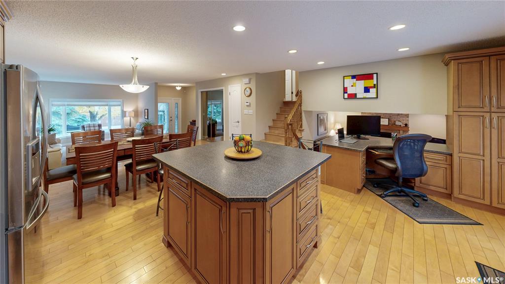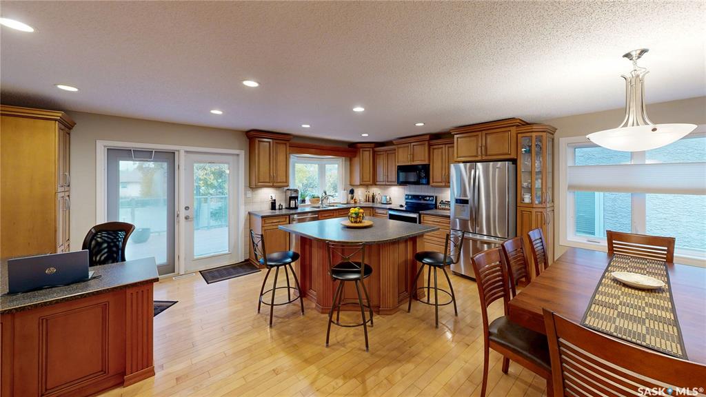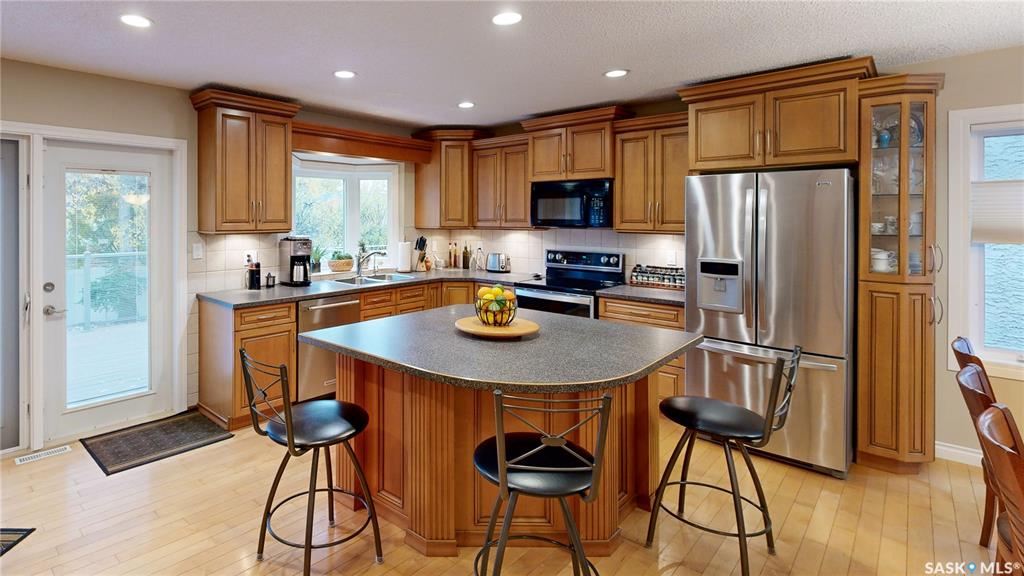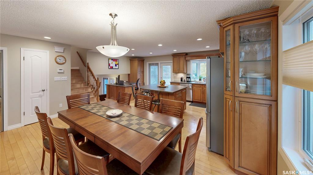 Welcome to this beautifully updated two-storey split located on a quiet crescent in Regina’s desirable east end. Built in 1983 and measuring 2,172 sq ft on a generous 6,895 sq ft lot, this property has great street presence with its exposed aggregate driveway, double attached garage with distinctive door colouring and stucco exterior with classic brick accents. Inside, a large entryway with generous closets sets the tone for the home’s thoughtful design. The main living area offers an open-concept feel, ...
