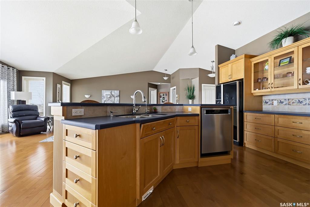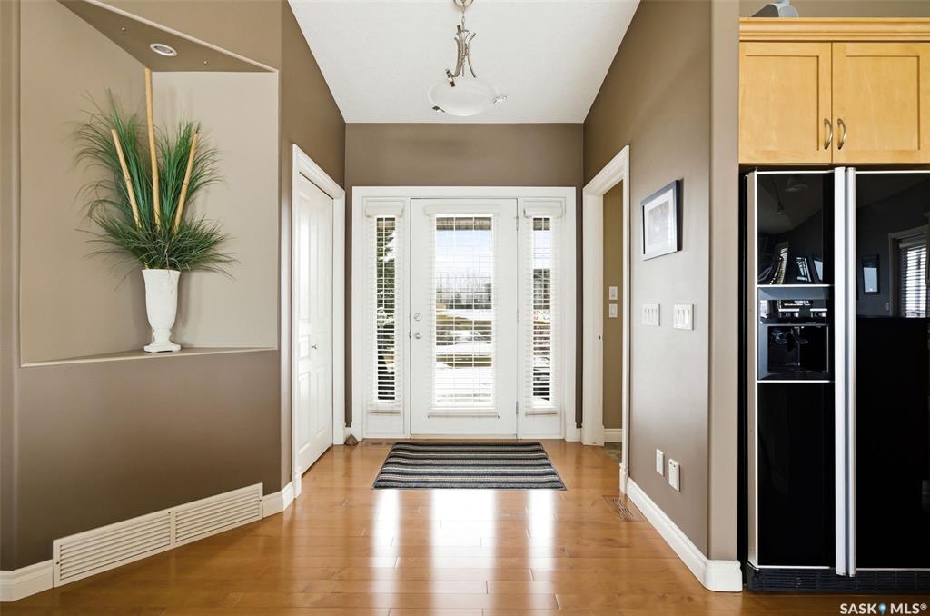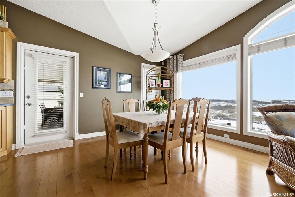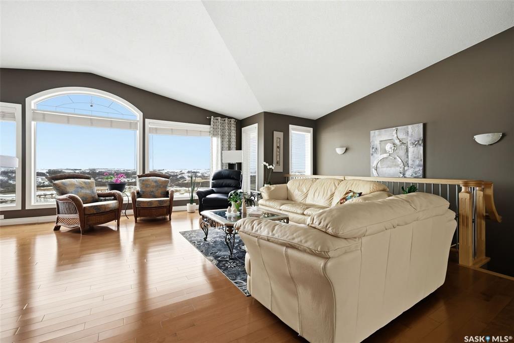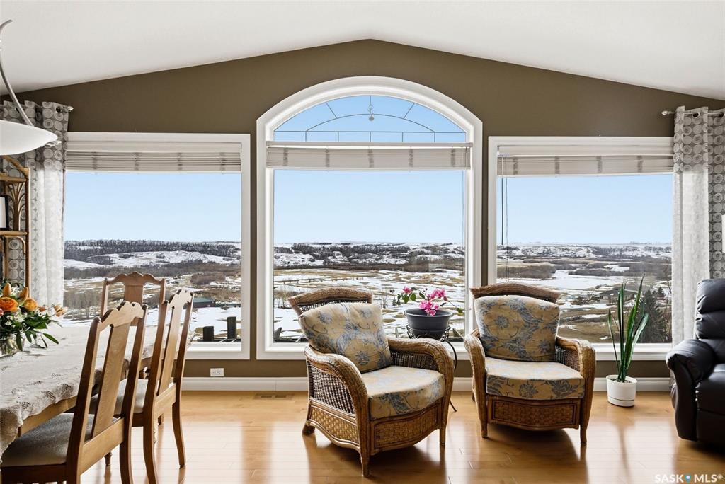 Welcome to this stunning Munro-built walkout bungalow, ideally situated to capture breathtaking views of the Qu'Appelle Valley and Deer Valley golf course. From the moment you step inside, you’re greeted by a spacious entryway that opens into a bright, open-concept living area featuring large south-facing windows that flood the home with natural light and showcase the incredible scenery. The main living space is finished with hardwood flooring throughout the living and dining areas, seamlessly connecting to...
