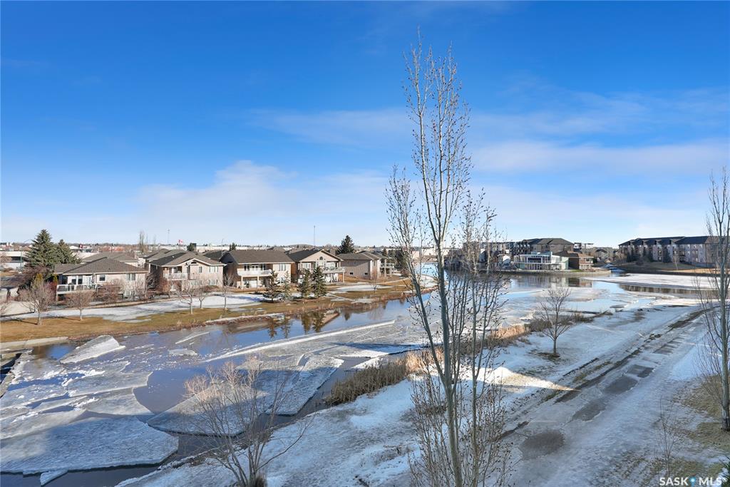 Excellent 1,475 sq. ft. top-floor apartment condo offering stunning views of the pond in Riverbend. Ideally located in East Regina with convenient access to shopping, restaurants, and public transit, this home combines comfort, style, and convenience. The main level features a spacious living room with vaulted ceiling and a garden door leading to a large, covered balcony—perfect for relaxing and enjoying the peaceful surroundings. The bright kitchen showcases white cabinetry and a built-in dishwasher. The p...