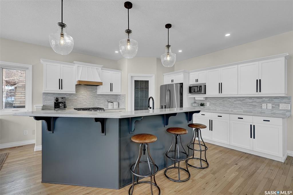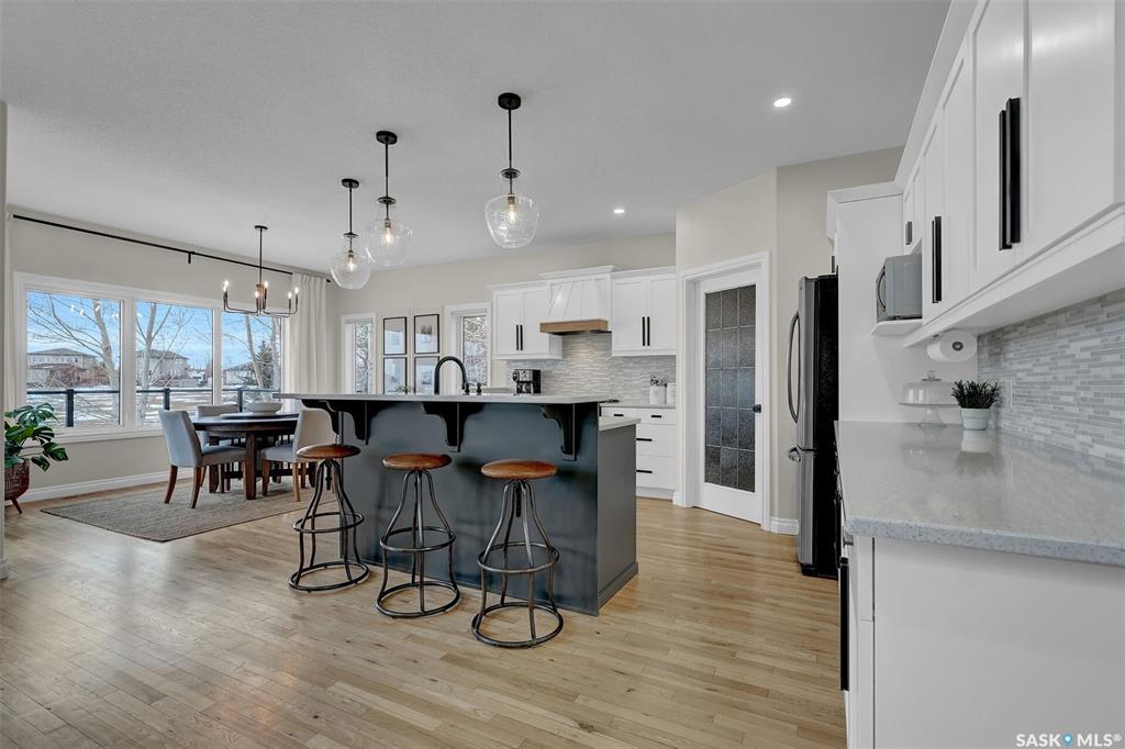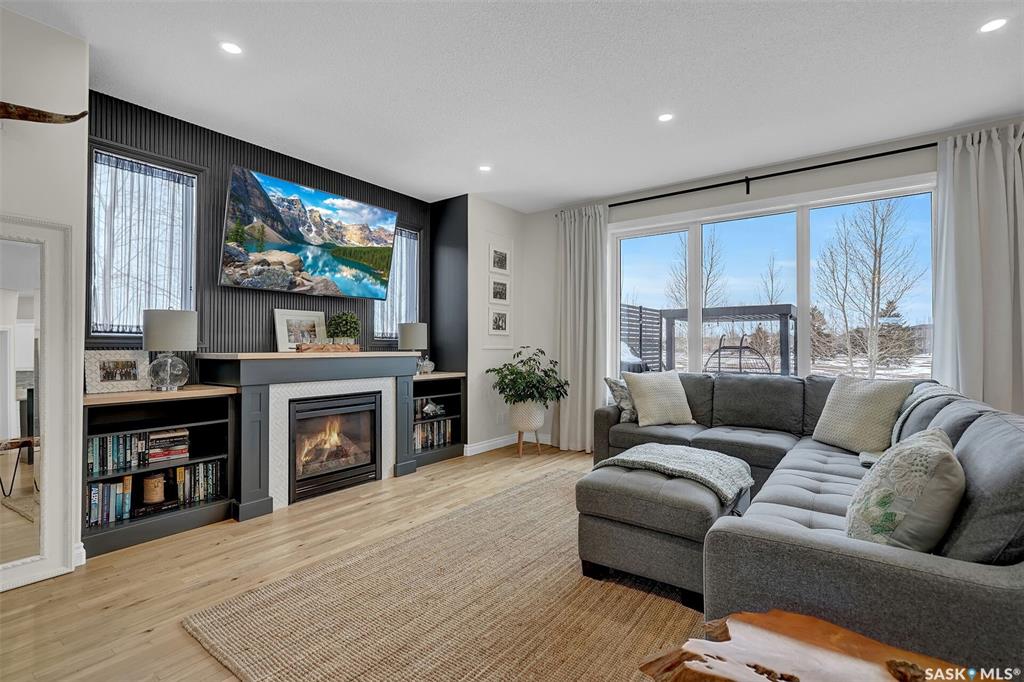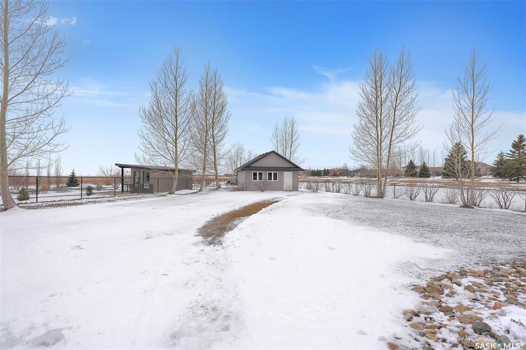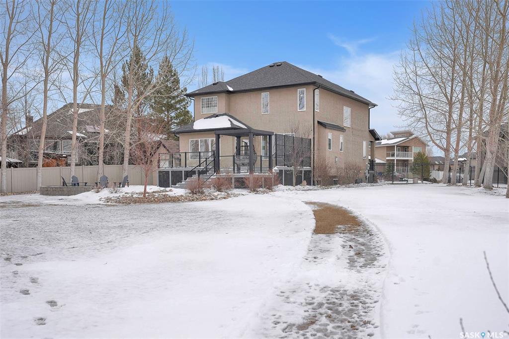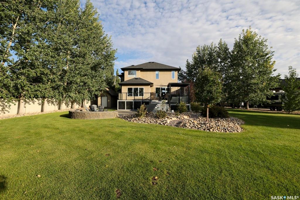 Enjoy the best of both worlds in White City—peaceful, small-town living just minutes from Regina, with easy access to schools, shopping, and amenities. This 4 bedroom 4 bathroom home is set on a 0.5-acre pie-shaped lot backing the 4th hole of Aspen Links Golf Course. This impressive two-storey built by Gilroy Homes offers privacy and scenic views. The main floor features 9-foot ceilings and light hardwood throughout the living and dining areas, with a gas fireplace and built-in shelving adding warmth and ...