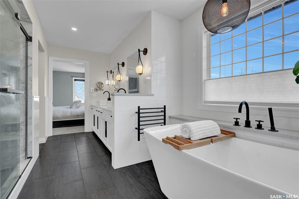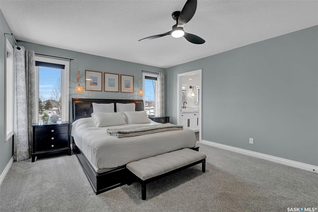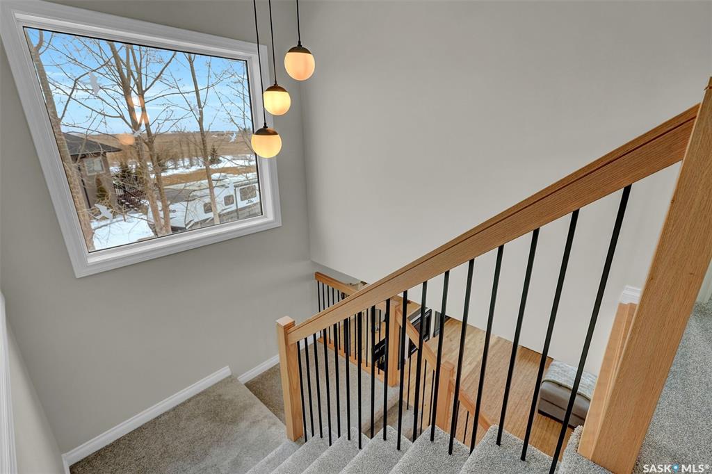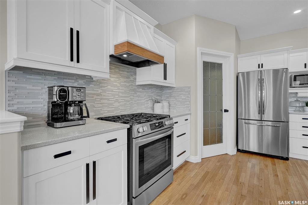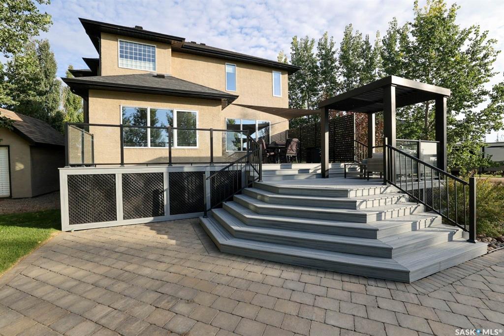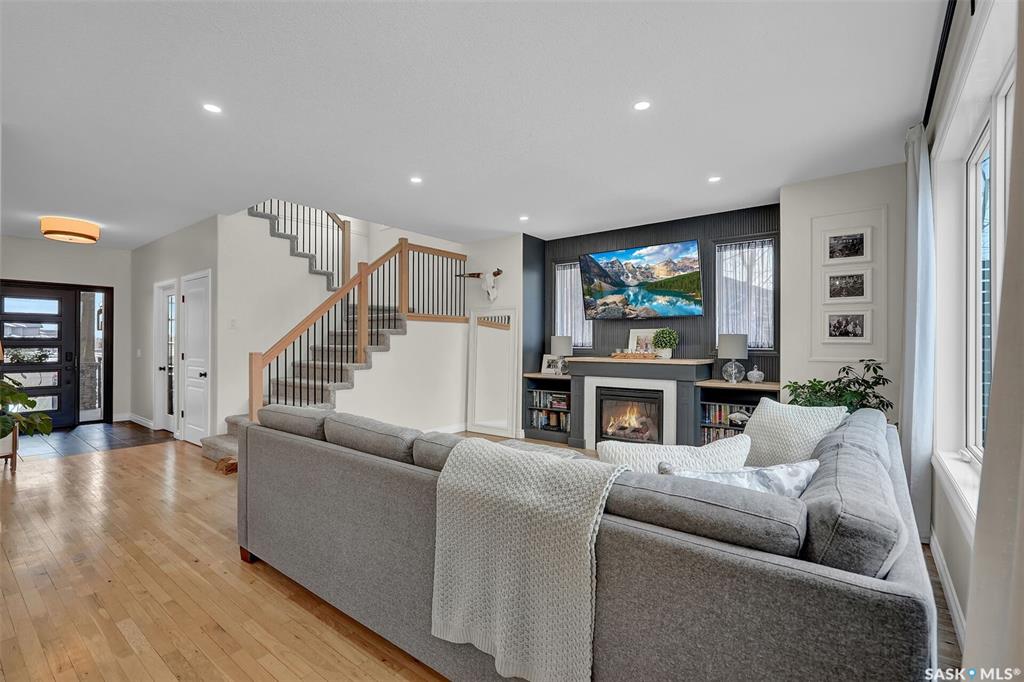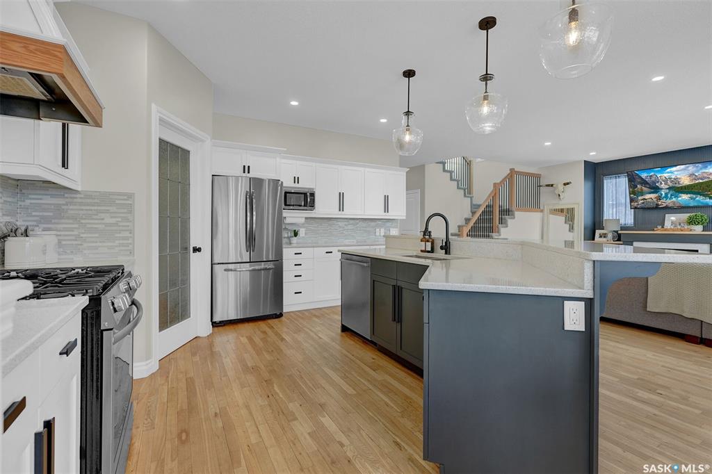 Enjoy the best of both worlds in White City—peaceful, small-town living just minutes from Regina, with easy access to schools, shopping, and amenities. This 4 bedroom 4 bathroom home is set on a 0.5-acre pie-shaped lot backing the 4th hole of Aspen Links Golf Course. This impressive two-storey built by Gilroy Homes offers privacy and scenic views. The main floor features 9-foot ceilings and light hardwood throughout the living and dining areas, with a gas fireplace and built-in shelving adding warmth and ...