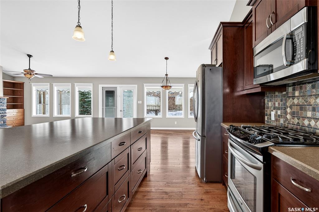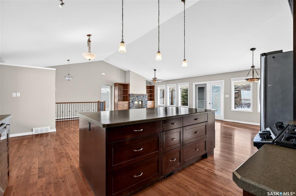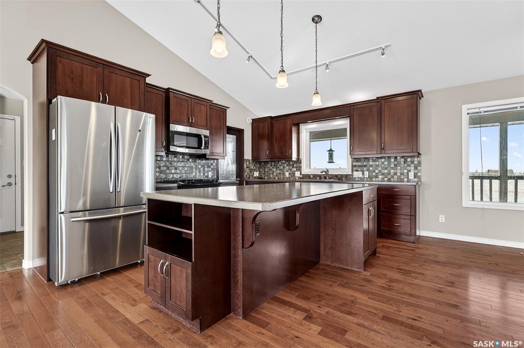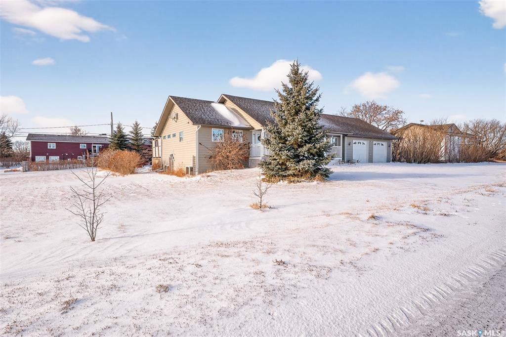 Welcome to country living on the edge of the Village of Mortlach! This home is East facing with a sunrise view of pasture & open fields from your front veranda while you sip your morning coffee! This spacious Bungalow sits on a large lot & just feels like “home”. The main Living Area is open concept & is anchored with a gas fireplace on one wall & stunning Kitchen at the opposite end. The Kitchen is well appointed with ample cabinetry, large island, gas range & a walk-in Pantry (noted in room sizes as “...