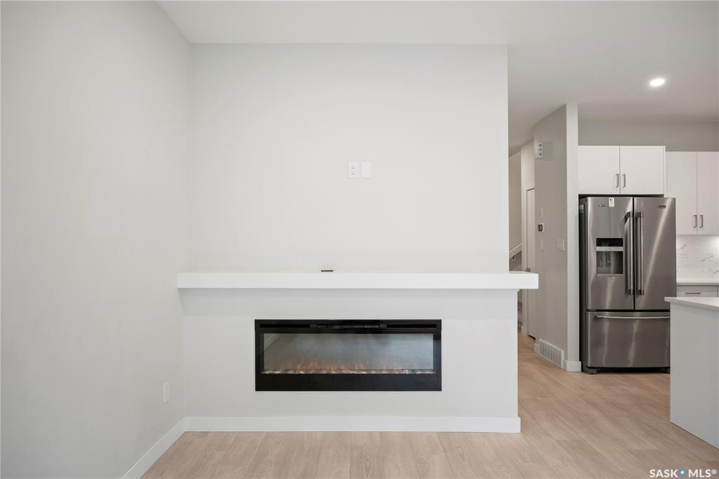 Welcome to this stunning two storey condo in the desirable neighborhood of The Towns, offering modern living at its finest. Step inside to a bright, open-concept main floor enhanced by 9ft ceilings and stylish vinyl plank flooring that flows throughout. The spacious living area, perfect for relaxing or entertaining, is centered around a cozy electric fireplace. The gourmet kitchen is a showstopper, boasting sleek high-gloss cabinetry, quartz countertops, a full-height marble-patterned backsplash, under-cabi...