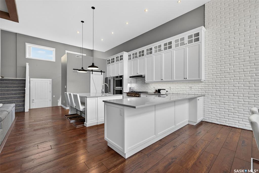 Beautiful one of a kind custom built bi-level home in the Greens on Gardiner. This 2528 ft.², 6 bedroom, 3 bath family home is exceptional in every way. The Open concept main floor features 13 foot ceilings throughout and 14 foot ceilings in the sunken living room. Custom kitchen with large island/10 foot high cabinets with soft close drawers and doors/Jenn-air appliances/double ovens/36 inch 6 burner gas cooktop with built-in hood vent and walk-in butlers pantry, large dining area, living room with wood be...