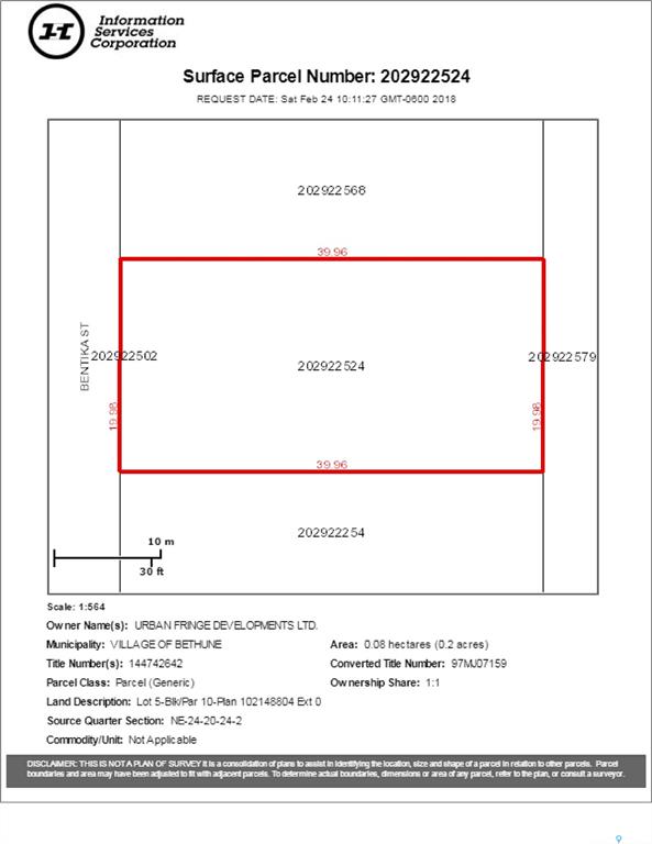 66 x 131 SERVICED LOT IN THE “URBAN FRINGE” DEVELOPMENT IN BETHUNE. Subdivision Services: Sanitary sewer system (at the front property line), Overland land drainage system, Water Line (at the curb stop located at the front property line), Street lighting, underground power, natural gas and telephone. Other lots available within the development and other locations in Bethune. Bethune is a ½ hour form Regina on divided Hwy 11, the village includes a k-8 school, (high school students are bused to Lumsden), a n...