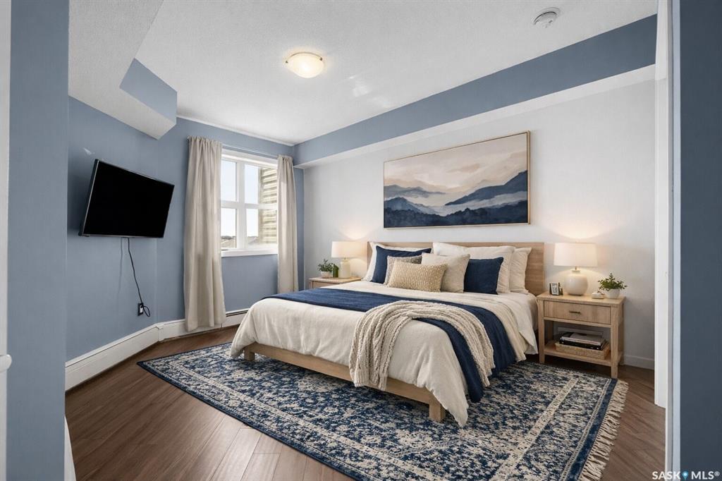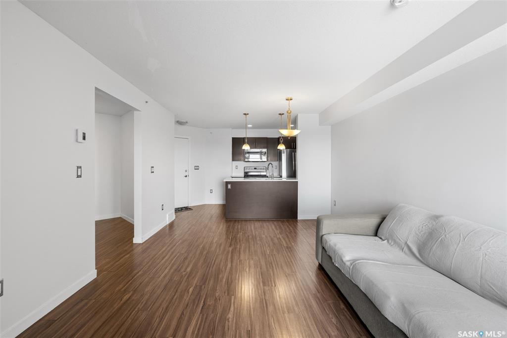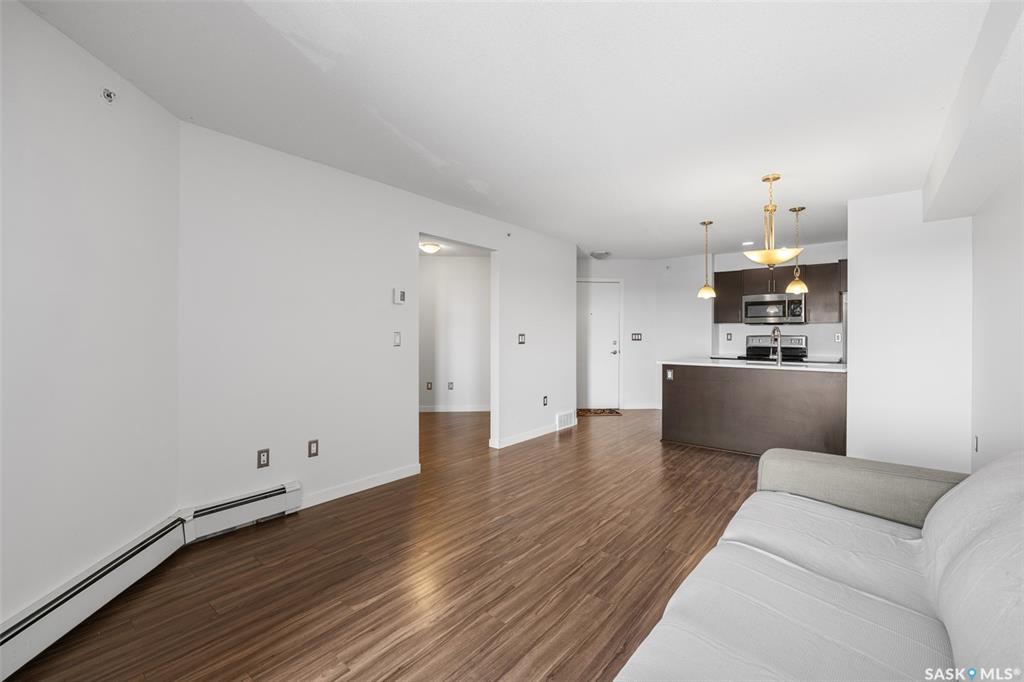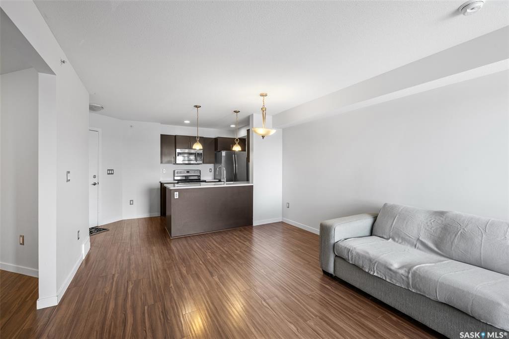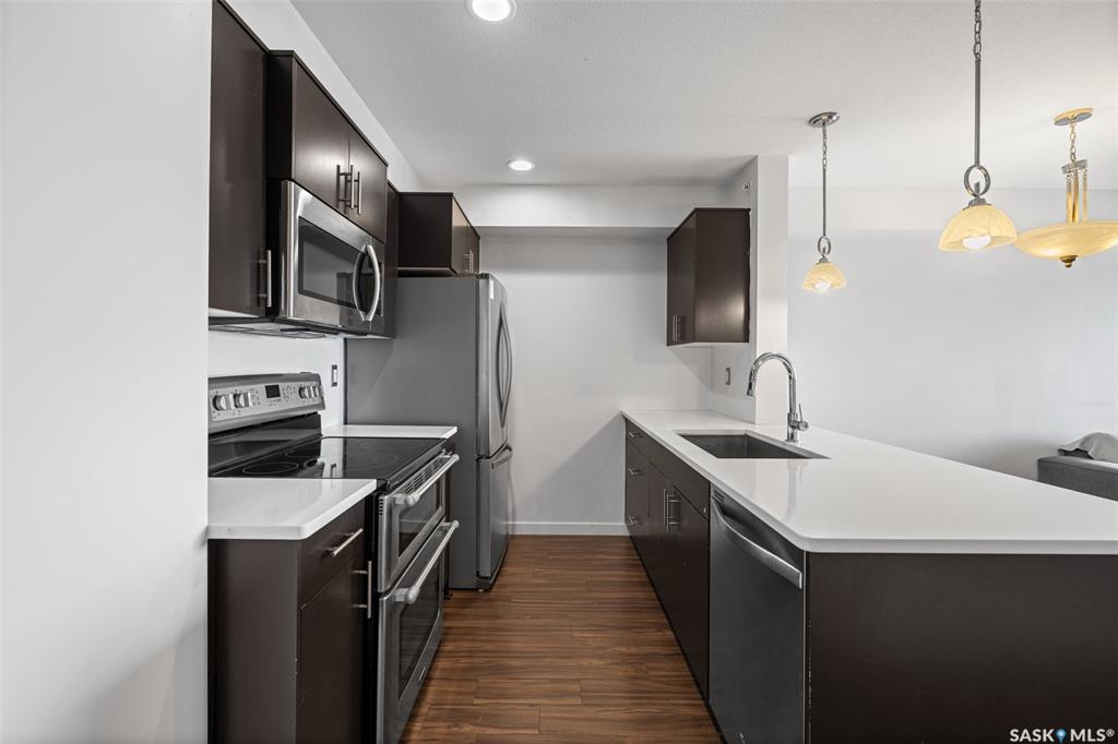 Welcome to #1414 – 5500 Mitchinson Way, located on the fourth floor of this well-maintained Harbour Landing complex. The moment you step inside, you’ll notice this isn’t your typical condo. It offers added privacy and a unique layout that truly stands out. The open-concept living space is warm and inviting, featuring laminate and tile flooring throughout, stone countertops, stainless steel appliances, and a functional eat-up island that flows seamlessly into the dining area and bright living room. Just of...