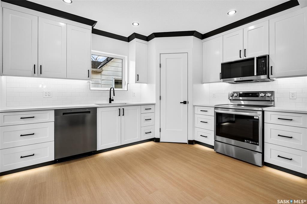 Be ready to be wowed as the pictures don't do this home justice!! This home has had a complete makeover! Entering through the large foyer with built in bench and cubbies leads you to the oversized and naturally bright living room with electric fireplace and new vinyl plank flooring. This space is large enough for a living room space and dining space at the back if the large eat-up island doesn't suffice. A step up into the huge kitchen is where you will find the island with quartz countertops. New stainless...