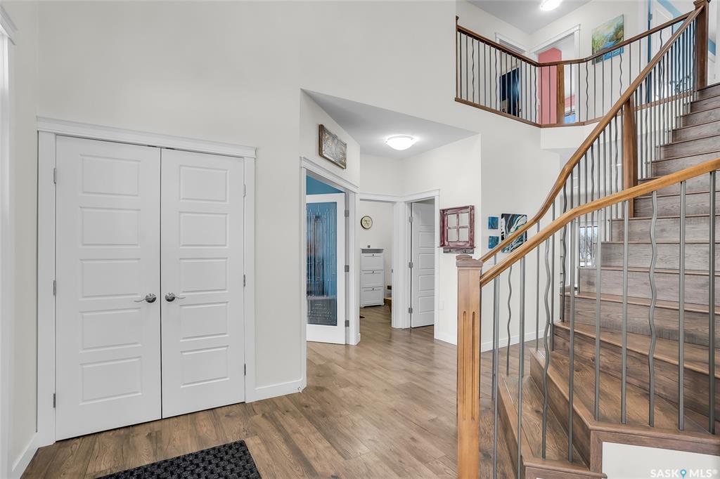Experience the perfect blend of country serenity and city convenience on this stunning 4 acre property, surrounded by natural bush, and breathtaking prairie skies. Designed with your large family in mind, this expansive home offers 2,800 sq. ft. above grade plus a fully developed basement—providing exceptional space and flexibility. Step into the grand foyer with soaring 20’ ceilings and a striking central staircase. The main floor is thoughtfully laid out for busy family living, featuring a private offic...