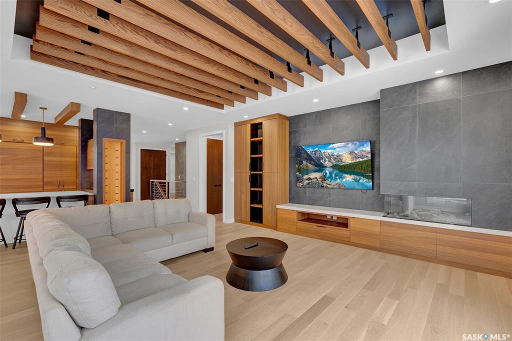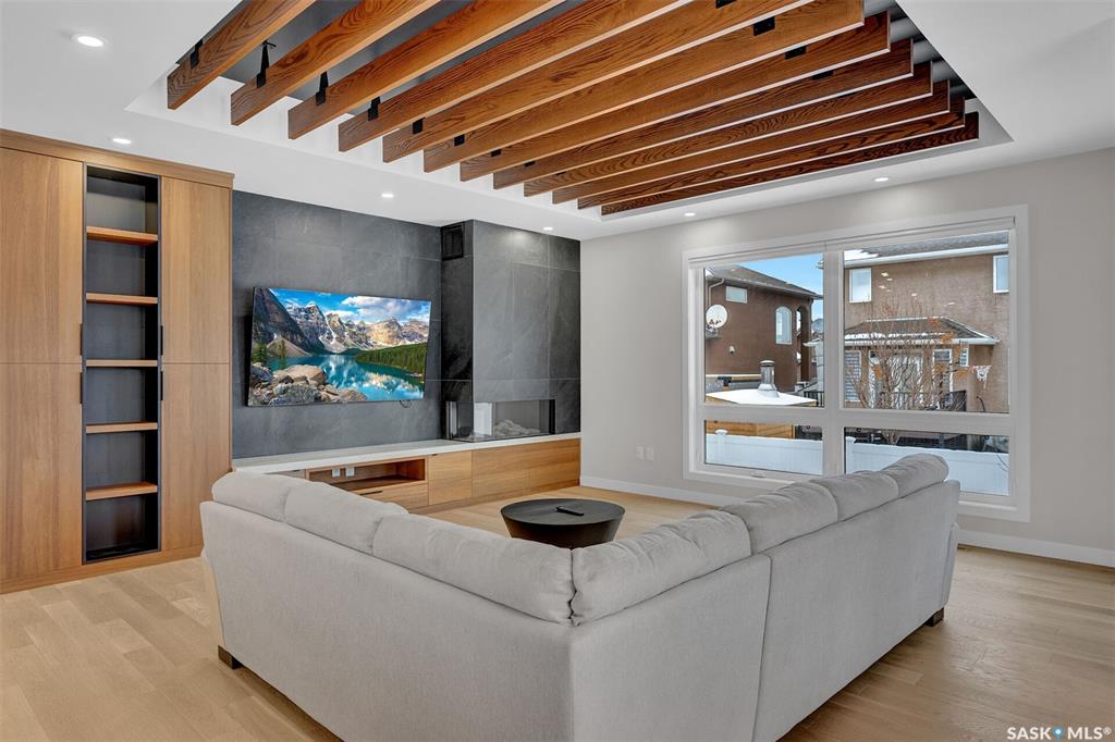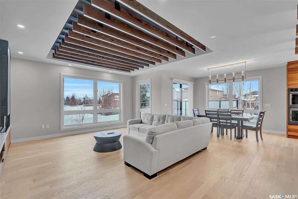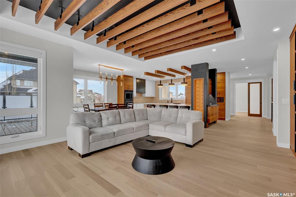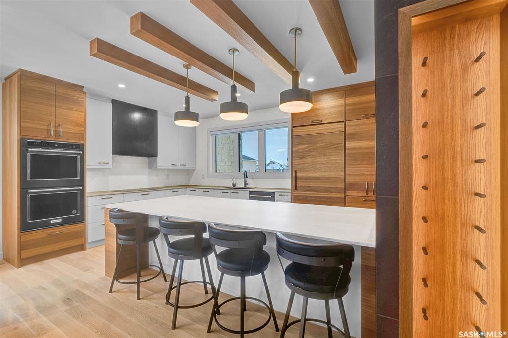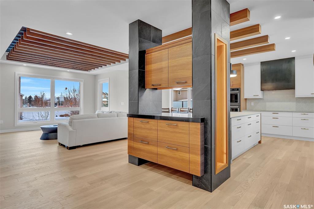 Mid-century modern by one of Regina's most respected builders: Westmount Homes (Tom Moore). Thoughtful design, remarkable craftsmanship & the builder's signature commitment to quality. Adjacent to an open space easement, this home will impress! Main floor 9' ceiling & suspended beams in great room ,gas fireplace wrapped in blackened steel, & custom millwork. Flooded with natural light, the space flows to dining area & the gourmet kitchen that is as functional as it is beautiful. Custom cabinetry, a large q...