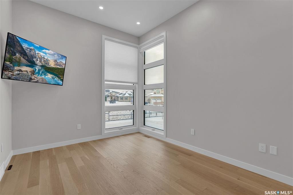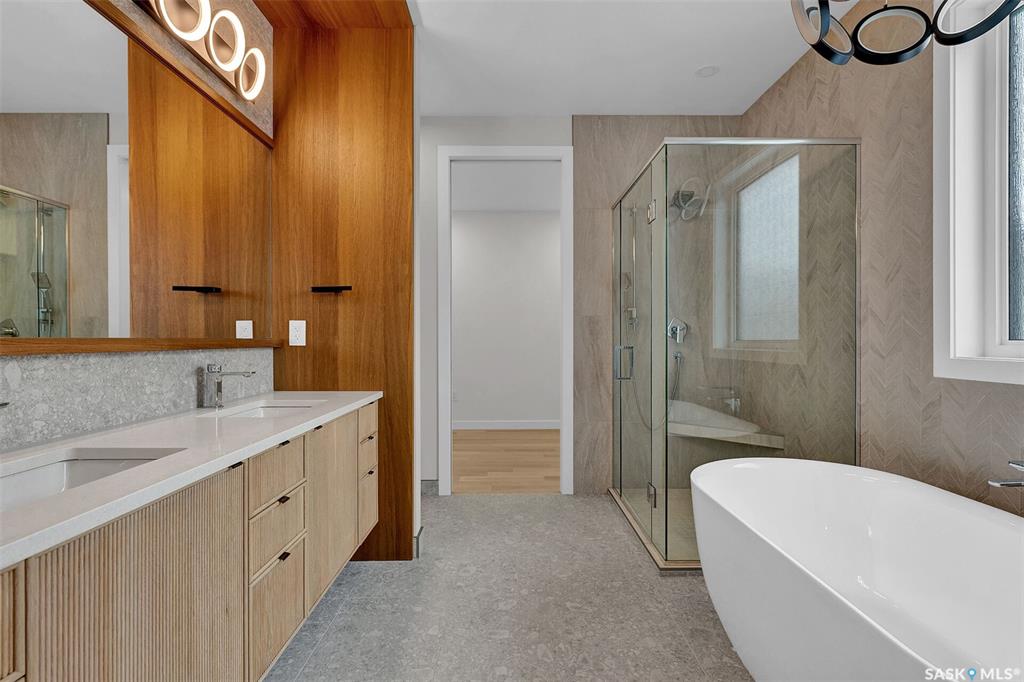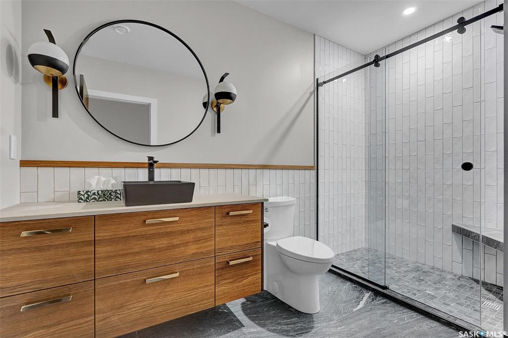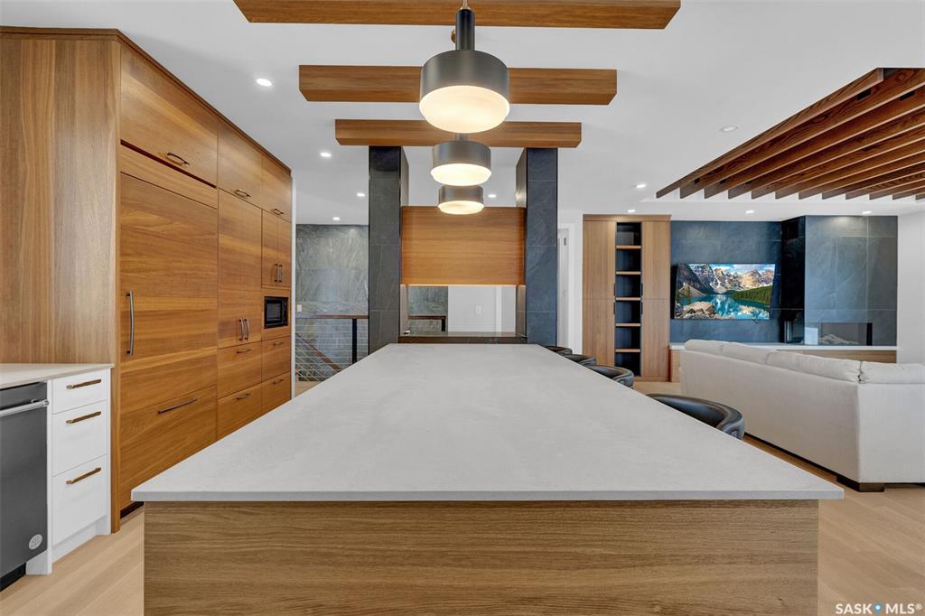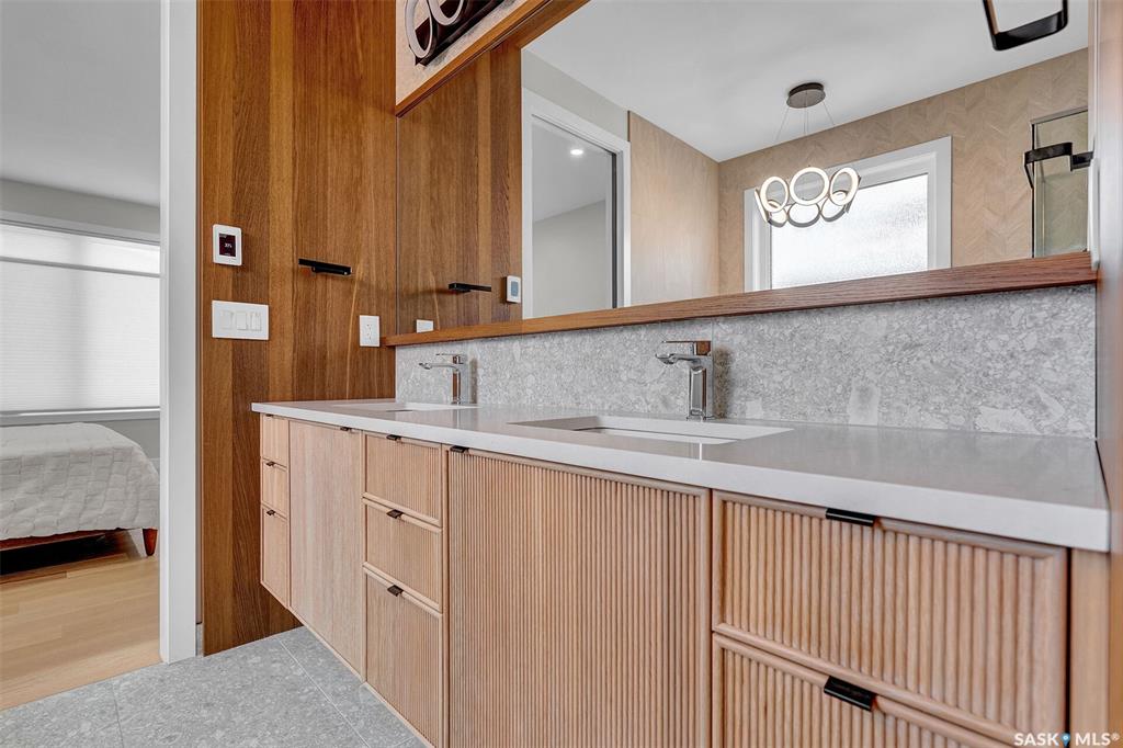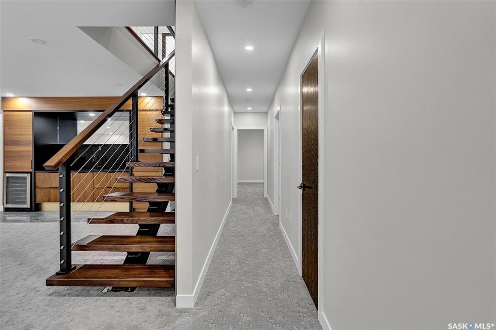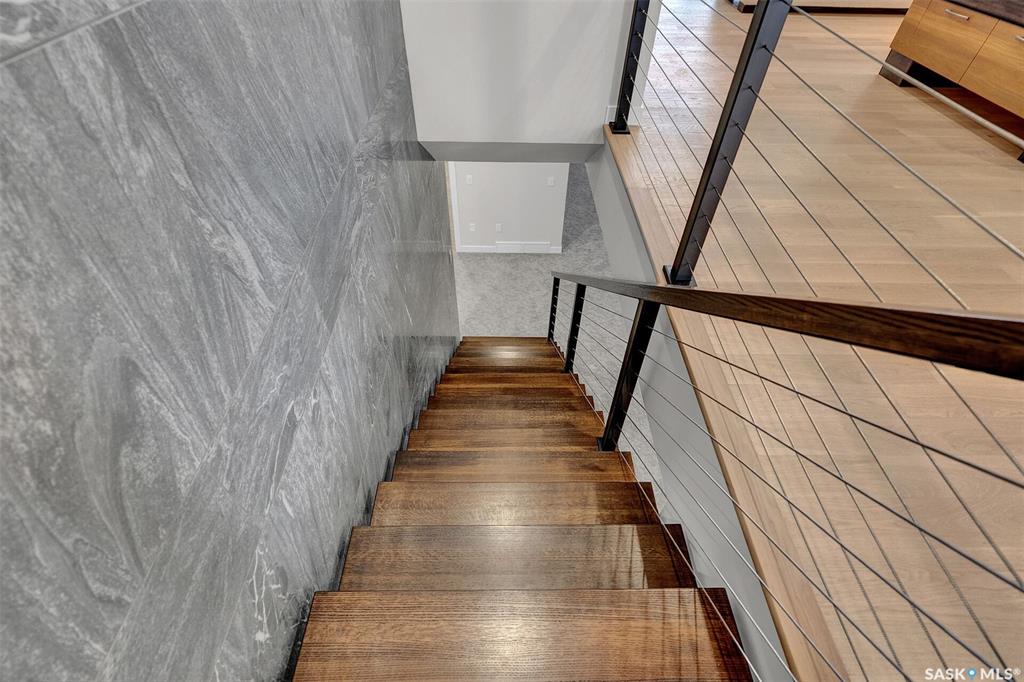 Mid-century modern by one of Regina's most respected builders: Westmount Homes (Tom Moore). Thoughtful design, remarkable craftsmanship & the builder's signature commitment to quality. Adjacent to an open space easement, this home will impress! Main floor 9' ceiling & suspended beams in great room ,gas fireplace wrapped in blackened steel, & custom millwork. Flooded with natural light, the space flows to dining area & the gourmet kitchen that is as functional as it is beautiful. Custom cabinetry, a large q...