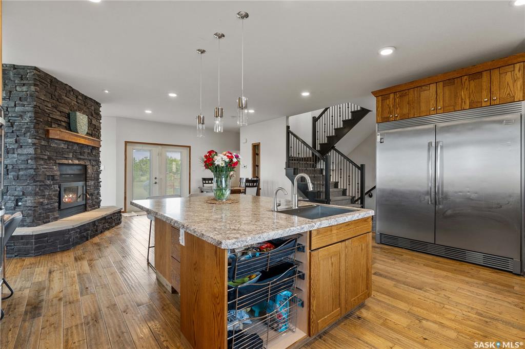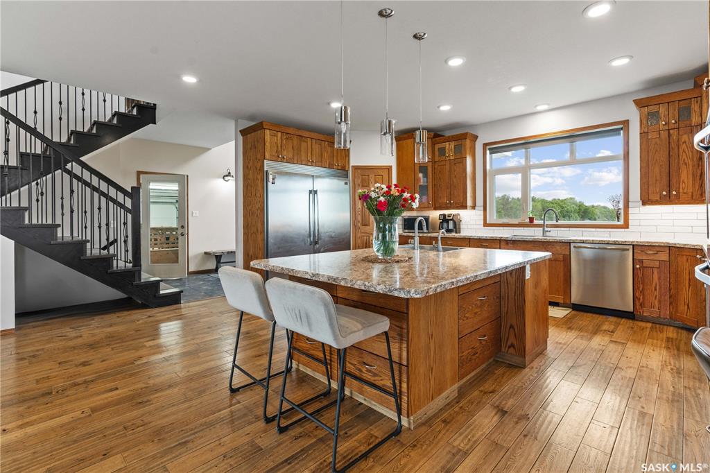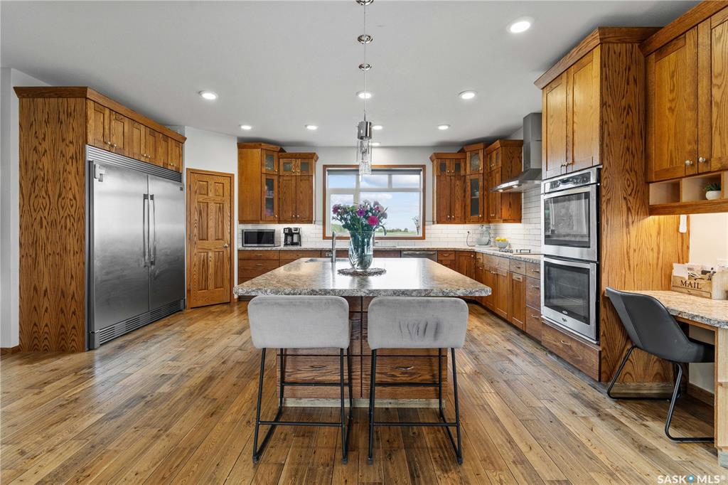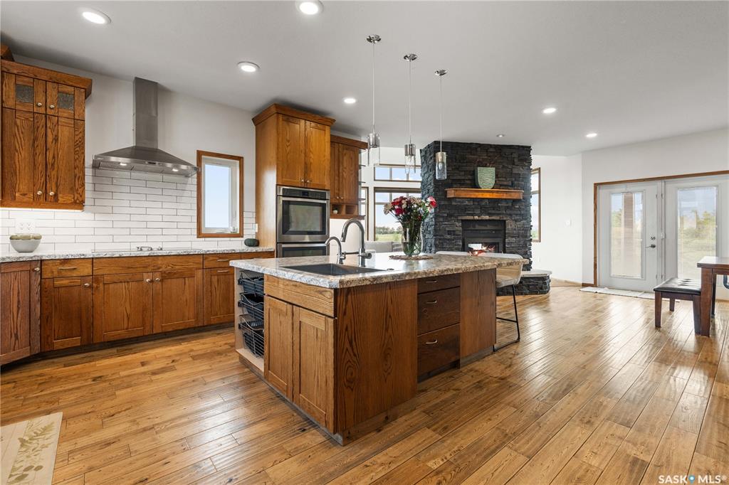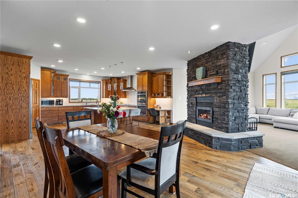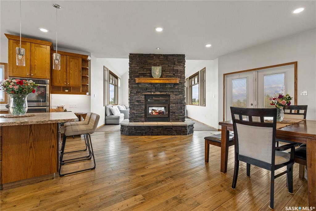 Welcome to your dream acreage! This gorgeous property offers 19.94 acres of meticulously maintained land. Whether you're looking for space, privacy, or a blend of agricultural and residential potential, this has it all. Step into the large, tiled front entry and feel right at home. Main floor showcases a spacious living room with massive windows and a striking stone fireplace, a formal dining area with rich hardwood floors, and a truly impressive kitchen. Designed for entertaining and family living, the kit...