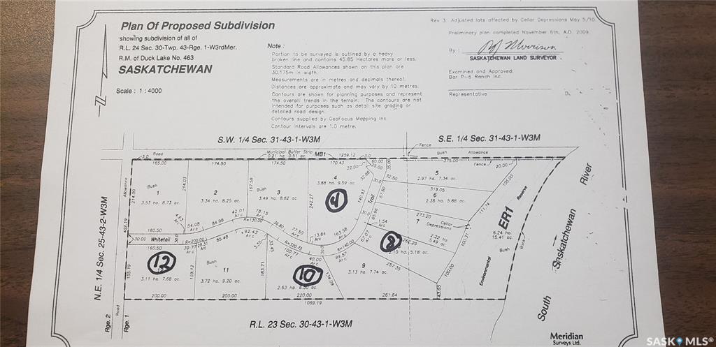 Secluded lot in riverfront acreage development northeast of Rosthern. Plenty of natural shelter for your comfort and privacy. 7.68 acres with power and phone line to property. $79,000 MLS